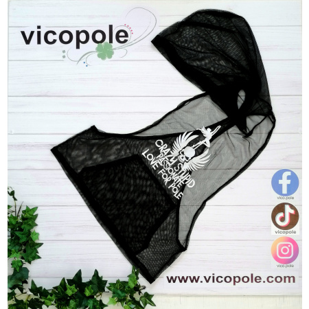 Playera capucha negra en mesh, CREAZY STUPID PASSIONATE LOVE FOR POLE