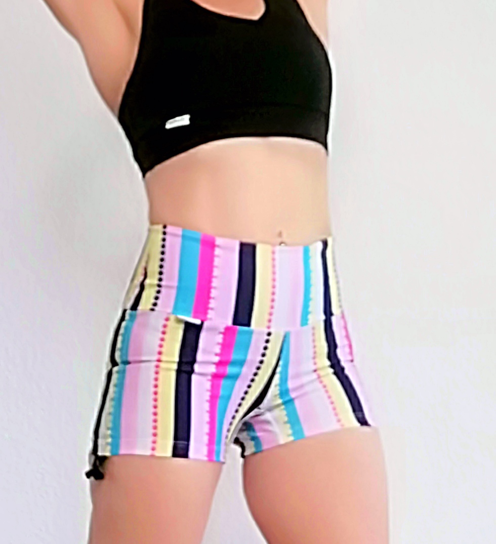Short de jaretas estampado en licra rayada con los colores del arcoris. Edición especial ACTION WEEKEND.