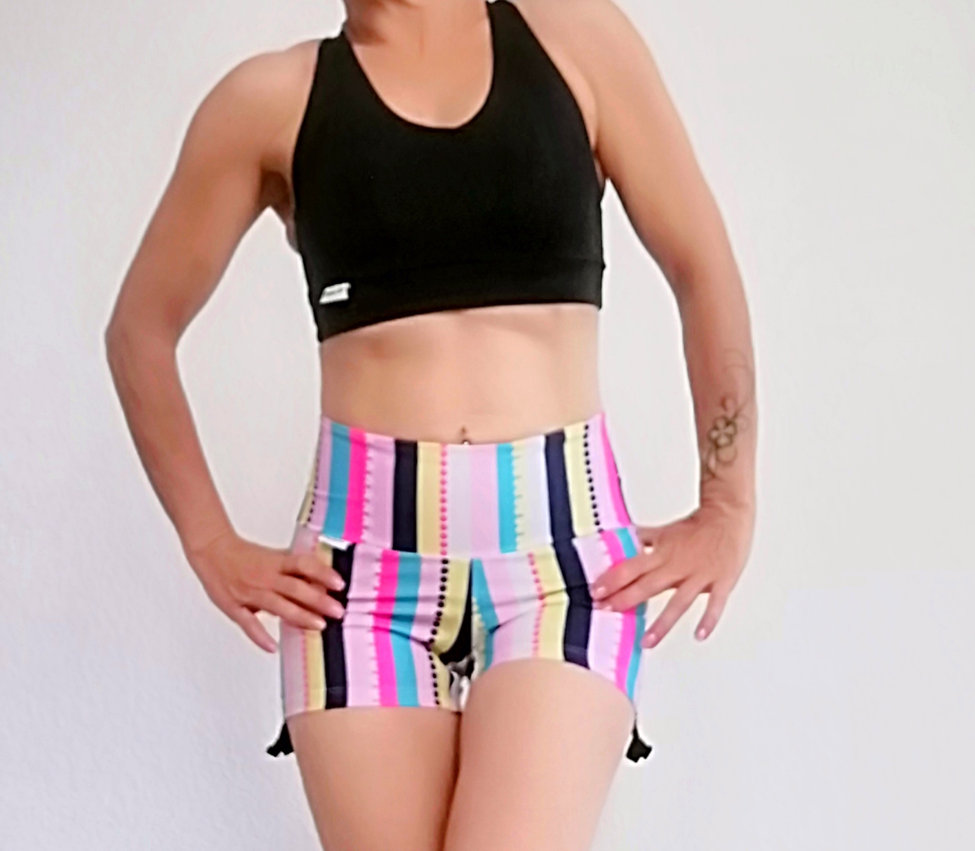 Corte tipo bikini, ajusta perfecto a la cadera, dejara libre el poket para tener buen agarre en tus transiciones, es el short ideal para practicar polefitness.
