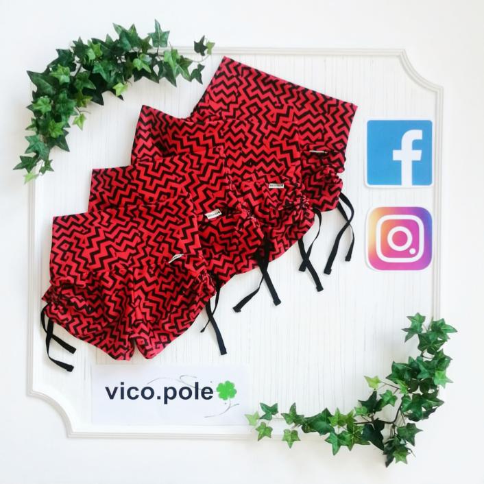 Short jareta, rojo con grecas negras. –XS– última pieza.