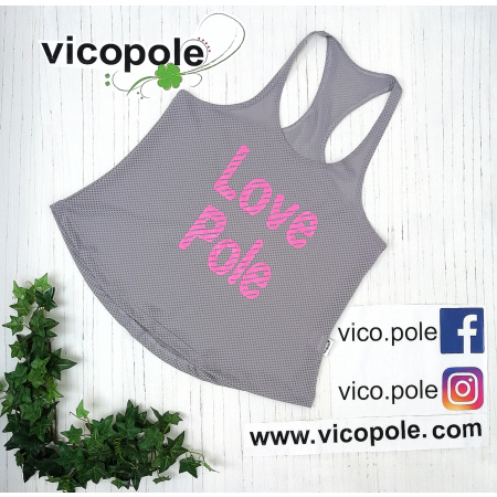 Playera modelo fit, en color gris, estampado texto en color rosa intenso, «Love Pole»